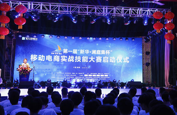 “新华·澜庭集杯”移动电商实战技能大赛参赛选手们宣誓助威
