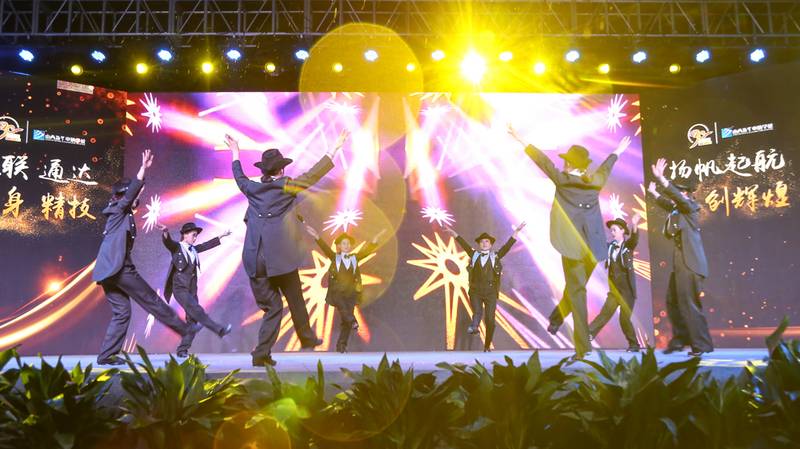 整场晚会以艺术节活动颁奖为主,穿插人机共舞、人屏光影秀、踢踏舞等科技类舞蹈表演,让所有观众感受到了科技与文化的魅力,也将晚会推向了一个又一个高潮,现场可谓异彩纷呈,震撼不已。