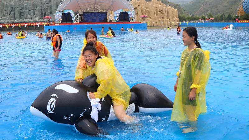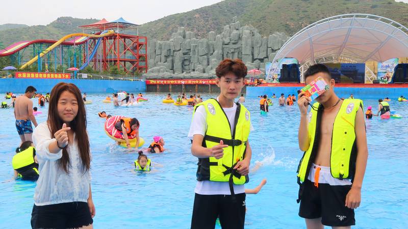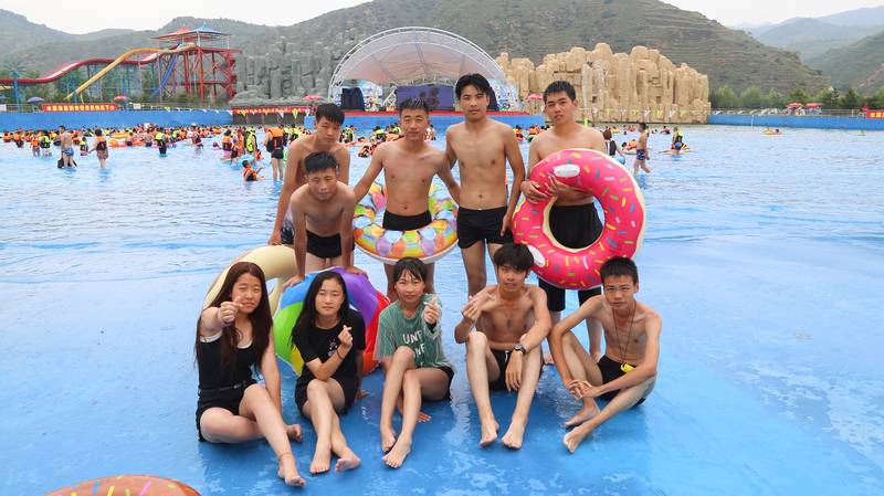 水上滑梯、人工冲浪、急速漂流,大片大片的水花在空中飞舞;欢声笑语、嬉戏打闹、竞速比赛,灿烂开心的笑容在脸上浮现,不少新华学子们躺在五颜六色、形态各异的游泳圈上随波逐流,从深邃峡谷中吹来的山风吹在每个人的身上,暑天?闷热?烦躁?不存在的!