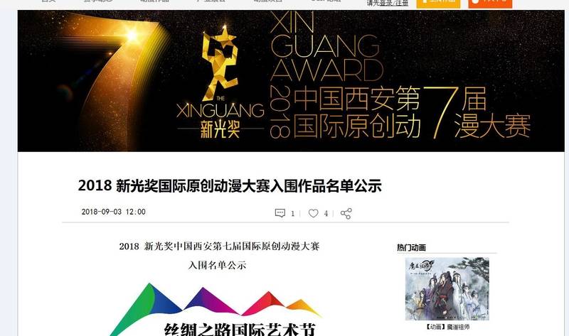 第七届中国西安国际原创动漫大赛新光奖由西安市政府、中国电视艺术家协会卡通艺术委员会共同主办,奖项包括动画长片奖、系列动画奖、新锐动漫奖、动画短片奖、最佳漫画奖、最佳插画奖等。本届新光奖云集了来自中国、英国、法国、加拿大、匈牙利、俄罗斯等16个国家和地区的2867部作品与项目,全球的行业精英在此荟萃,众多作品在此争奇斗艳、一决高下,而邓老师的作品,便是这其中最亮眼的明珠之一。