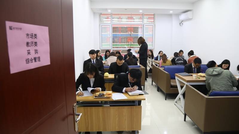 人才是一个公司长久稳定发展的核心力量,也是新华教育集团数十年领跑互联网职业教育行业的关键,新华既是为社会输送优秀毕业学子的基地,也是各地优秀学子理想中的入职企业。新华教育集团每年都会从各大院校中吸纳潜力人才,扩充职工团队、强化职业素质。2019年校园招聘山西站共分初试和复试两个环节,通过层层测试和遴选,最终进入本次复试的学生们皆是校园中的佼佼者,他们神态放松地在休息等待室里交流着各自的经验,还不时品尝一下学校提供的美味糕点。