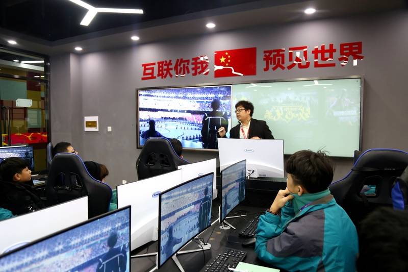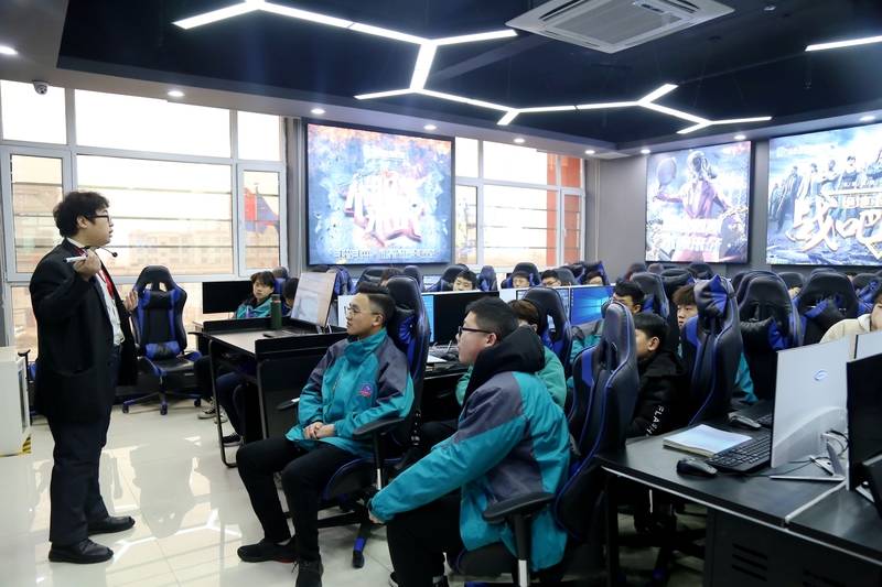 在电竞教室里,动漫游戏设计与电子竞技运管专业的学子正在学习电子竞技产业概论,电竞教师王猛以《英雄联盟》S7总决赛的场馆布置、传统与电竞文化的交织与表现形式为例,为学子分析了电竞赛事的文化艺术以及与体育的关系,课堂上气氛活跃,精彩有趣学习内容引起了本就对电竞感兴趣的学生们的共鸣,常常与老师互动提问,陷入沉思的疑惑和灵光乍现的顿悟在一副副小脸上交相变换着。