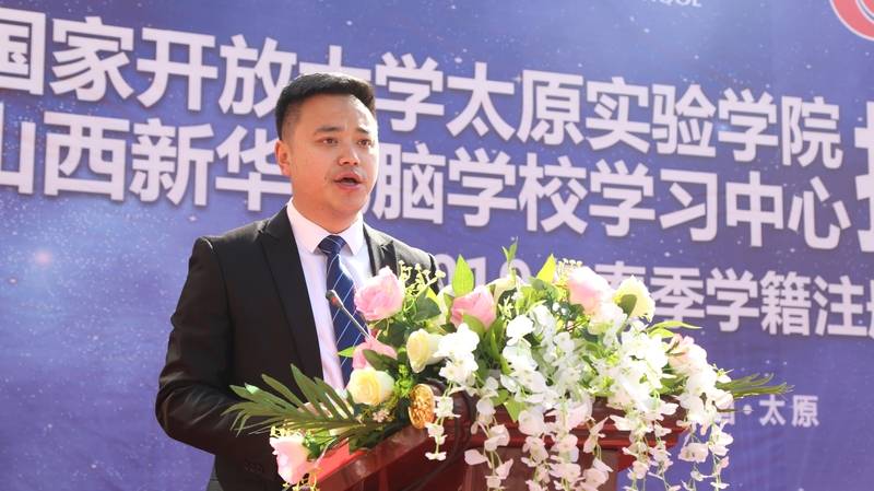 时耐敏校长也作了激动人心的讲话,他简单介绍了国家开放大学的概况,强调了大学服务全民、终身学习的教育理念和大力发展文凭教育、非文凭教育的办学目标;时校长对山西新华“职业技能+文凭教育”的教学模式表示赞赏和肯定,希望能通过与山西新华的合作共同创建学习平台;时校长还告诉同学们取得高等院校文凭的重要性,国家开放大学的文凭对同学们向更高层次发展有着不可替代的作用。