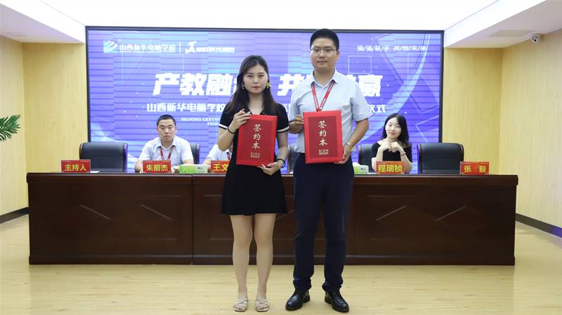 首先,山西新华电脑学校创就业指导中心张毅主管与京轩科技集团高管共同签订校企合作协议。随着协议的签订,山西京轩科技集团有限公司正式成为我校校企合作定制班。山西新华将持续开展校企合作和订单式人才培养模式,为企业培养更多的优秀人才。