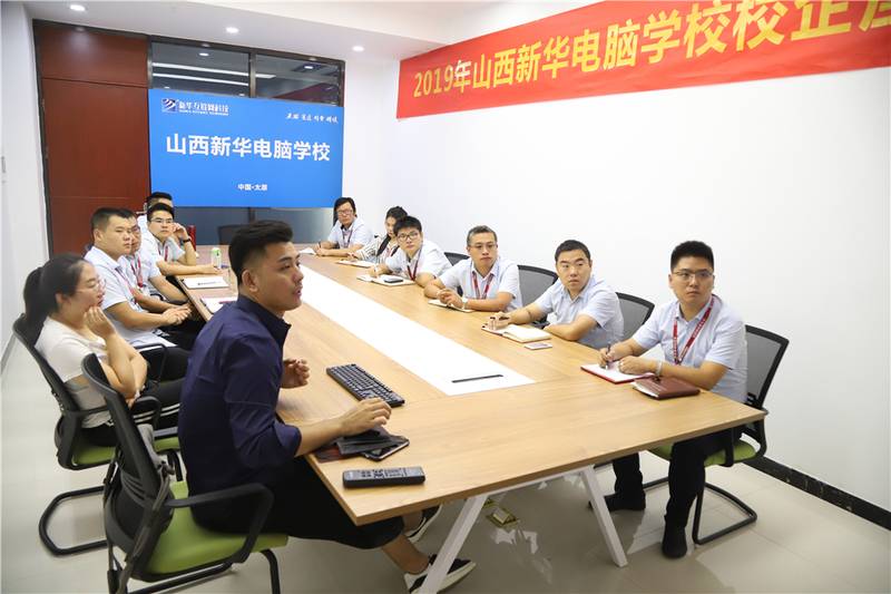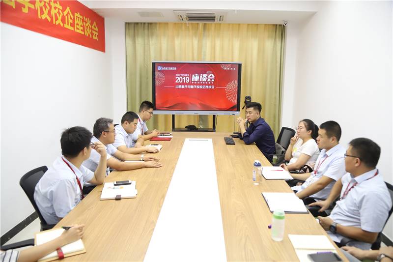 山西新华电脑学校校区主任王主任、源创艺科技有限公司技术总监智总、源创艺科技有限公司人事经理雷经理、山西新华电脑学校教务处主任朱主任、山西新华电脑学校创就业指导中心主管张主管等企业代表及学校领导与山西新华电脑学校相关教务和就业办老师共同出席了此次座谈会。