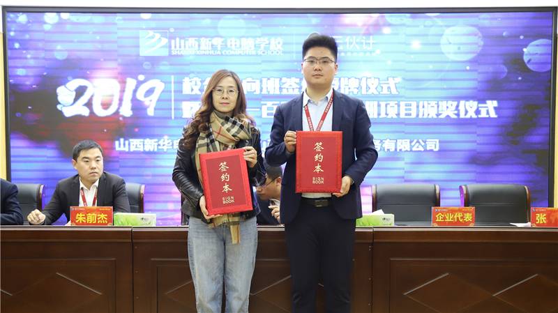 随着仪式的进行,山西新华电脑学校创就业指导中心主管张毅到签约席与山西云伙计电子商务有限公司总经理田经理共同签订校企合作协议,代表着云伙计电子商务有限公司正式成为了山西新华电脑学校的校企合作单位,山西新华将继续开展订单式的人才培养模式,为合作企业培养专业人才。