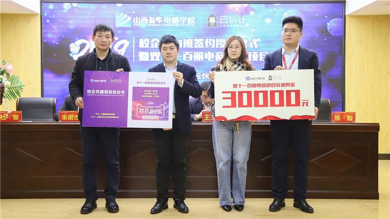 11月14日,山西新华电脑学校与山西云伙计电子商务有限公司校企对接班签约授牌仪式暨双十一百丽电商实训项目颁奖仪式在山西新华电脑学校多媒体报告厅隆重举行。学校相关领导及企业方代表共同出席,和互联网运营与创业专业近百名学子共同见证了此次仪式。