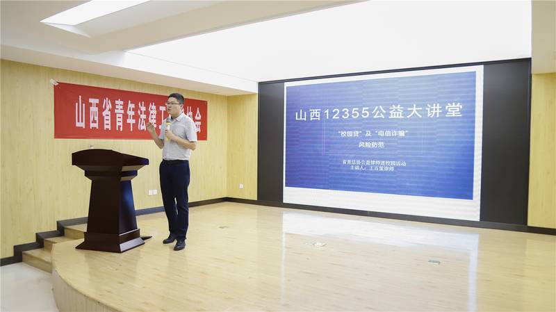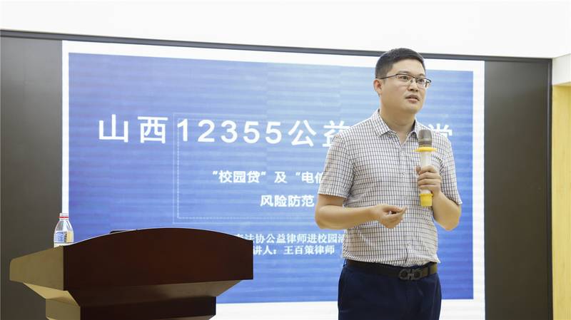 为进一步强化学生防范校园“套路贷”的意识,提高学生识别电信诈骗、网络诈骗的防范意识,引导和帮助学生树立理性消费观念,打造平安和谐校园,山西新华电脑学校特邀请山西12355公益大讲堂-省青法协公益律师王百策律师走进学校为我校学生开展“‘校园贷’及‘电信诈骗’风险防范”专题讲座专题讲座。