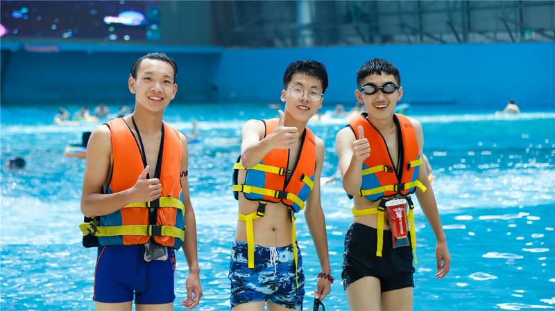 此次夏令营,音乐、阳光、浪花在这里一起跃动,嗨起来,一场超视觉水上狂欢盛宴上演。真空造浪、大黄蜂滑梯、大型水寨、超级大喇叭滑梯等数十个项目,让同学们感受到水上世界的美好时刻,简直爽到嗨。