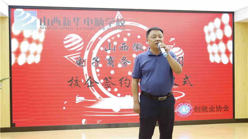 首先山西徽晋电子商务有限公司总经理耿总对徽晋电子商务有限公司的发展历程、综合实力和发展方向方面进行了介绍。他表示,本次签约仪式标志着山西新华电脑学校与山西徽晋电子商务有限公司进入了新一轮的合作阶段,为山西新华电脑学校提供了强有力的就业保障,同时也为山西徽晋电子商务有限公司创新驱动发展提供了不竭的动力支持。相信在双方的共同努力下,共同搭建校企合作的平台,必定会让新华学子得到更广阔的发展空间。