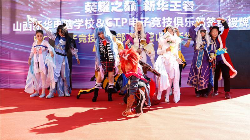 仪式在山西新华动漫社精彩的COSEPLAY秀表演中拉开帷幕,CTP电子竞技俱乐部经理马经理对CTP俱乐部现状及发展规划进行了详细的阐述,包含俱乐部业务发展情况,校招岗位薪资福利及发展通道等。马经理提到本次签约授牌能为新华学子带来的就业岗位包含电子竞技运动员、数据与战术分析师、场地运营与维护、游戏主播、游戏设计师、俱乐部运营、赛事策划等。