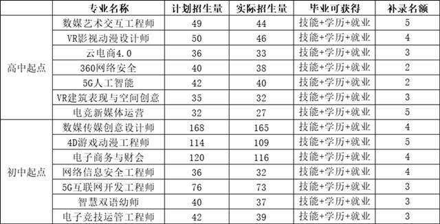 为了满足更多“有知识、有梦想”的青年学子加入“互联网技术人才”行列,成为令人羡慕的“都市白领”和闪亮职场的“IT精英”,报读我校“技能+文凭+就业”热门互联网专业,应广大学子和家长的需求,结合我校实际情况,特向上级主管部门申请各专业补录名额,具体专业补录计划如下: