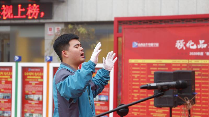 “一送(里格)红军,(介支个)下了山,秋雨(里格)绵绵,(介支个)秋风寒...”比赛前,无论是中午午休时间,还是晚上自习课时间,在山西新华电脑学校的校园里都听到各班级学生排练合唱红歌的声音。