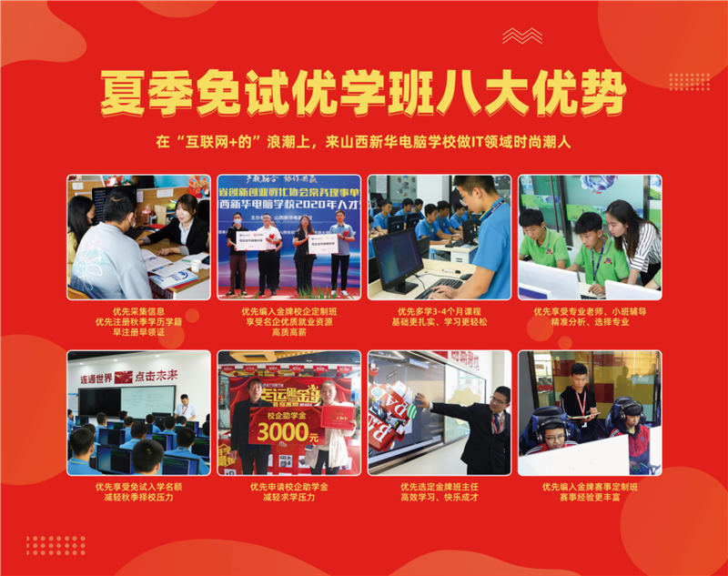2021年中考新规,一半的考生将无缘高中,对于未来是继续迷茫还是为自己预定一个美好前程,山西新华电脑学校2021夏季免试特招名企优学班报名已经开始啦,现在报名,马上入学,青春不等待,抓住机遇,刷“薪”2021。
