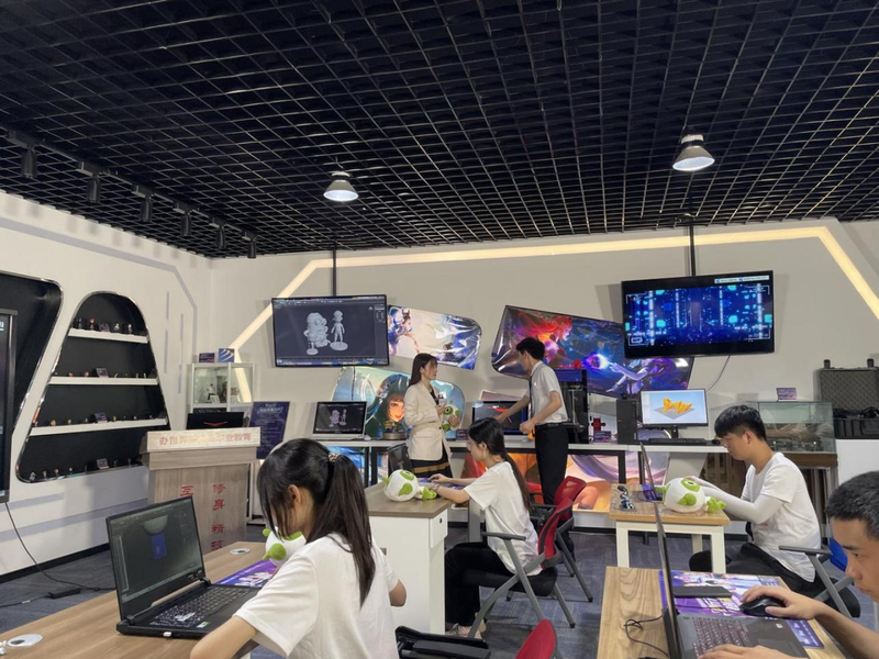 当电脑屏幕上出现一个个立体生动的动漫形象时,《动漫设计小课堂》也正式开课。理论与实践有机结合的教学方式,教学与实践融入场景的案例教学法,还有现场讲解演示、现场实操、检查指导、案例练习、展示点评等新华电脑独有的“五步教学法”,都令学生们兴趣盎然学习热情满满。