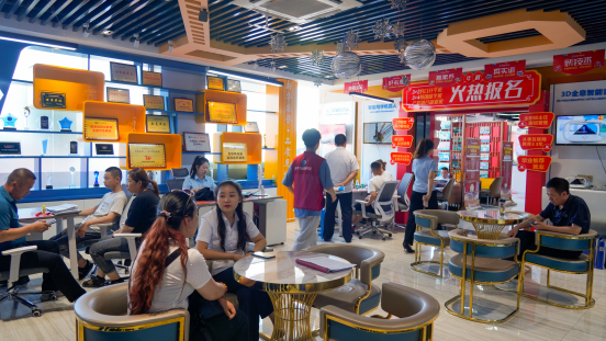 咨询中心的老师热情的向来校的家长和学生介绍学校开设的专业、校园环境、教学设施、师资力量等情况,并根据同学们的实际情况、求学需求和兴趣爱好,结合他们的个人特点为他们推荐适合的专业。家长和同学们都非常仔细的聆听咨询老师的参考建议。面对如此火爆的咨询报名场景,咨询中心王主管谈到“现在我们的职业教育很受国家重视与扶持,尤其是互联网行业人才的需求与日俱增,很多家长都带着孩过来咨询了,早早就送孩子来上课学习了。”