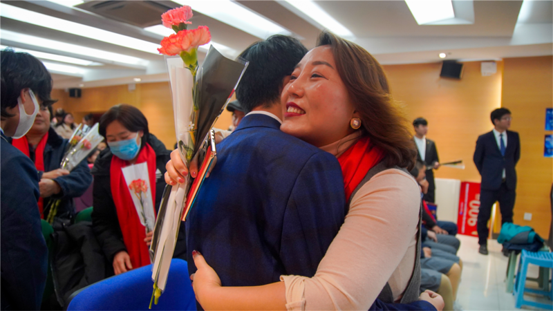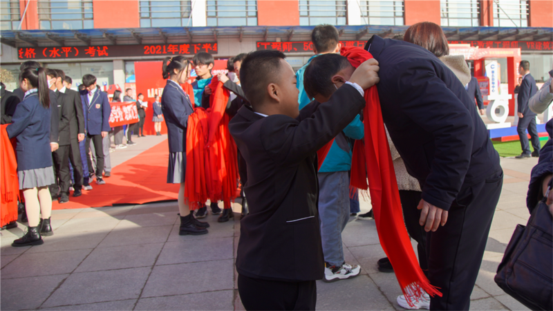 当孩子们和家长携手走上红毯的那一刻,父母的腰杆更挺拔,孩子的笑容更灿烂,星落凡尘,斑白双鬓;碧水荡漾,蹉跎青春。几丈宽的红毯是荣耀大道,更是孩子们和父母享受陪伴的最好时刻。孩子给父母鲜上鲜花,父母的脸上洋溢着幸福和快乐,也开启属于他们的鉴证时刻!同学们无比幸福的牵起家长的手走过红毯走向幸福的彼岸!