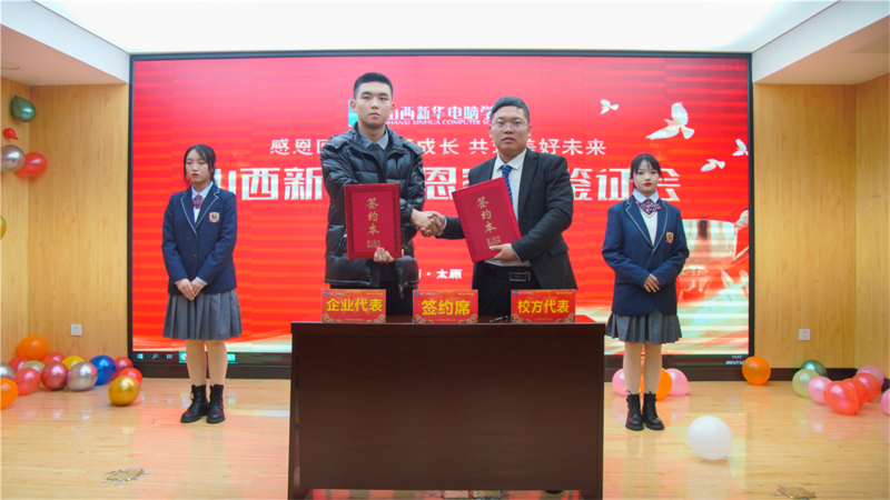 为了深入贯彻“职业教育、就业为先”的办学理念,落实好学校的就业保障体系,坚持以就业为职业教育的核心,提高学生就业质量,实现学生优质就业。在家长们的见证下,山西新华与太原新宇科技有限公司、山西梵尘网络科技有限公司举行了校企合作签约仪式,两家公司正式成为了山西新华学生的实训实习基地,双方将展开深入合作,为新华学子提供更多的资源和机会。就业保障,山西新华是认真的!