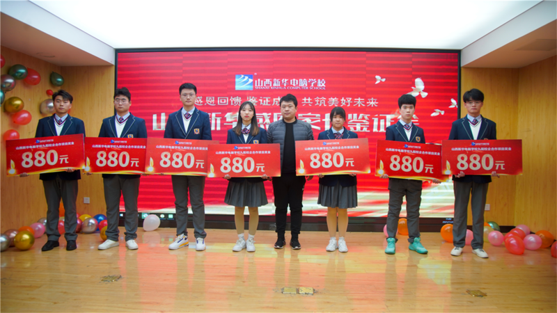 让每一个学生高兴就业,一直是山西新华电脑学校努力的方向,为进一步完善学校就业保障体系,提高学生实战能力,保证学生优质就业,在校实现财务自由,山西新华联合学校合作企业开展多项校企合作项目实训。山西新华各专业实训项目负责人分别对各专业开展实训项目进行总结分享。为更好推进实训项目的相关工作,表彰优秀,学校领导和合作企业领导分别上台为表彰学子颁发荣誉证书和奖品、奖金。看到孩子在山西新华的成长和新华的教学实力,家长的开心溢于言表,对学校给予了极大的肯定。