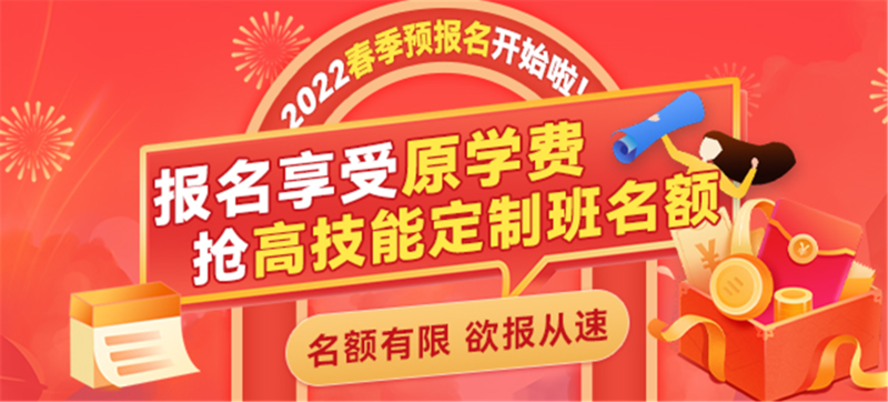 每年春季,企业用人荒与求职低峰期重合,彼时,企业就更加急迫需要高技术、实干型人才,这个时期毕业的学生能够获得更多的就业机会。我校设有高技能定制班,限额招生,提前抢占春季预报名名额,就能提前抢占高技能定制班的名额!高技能定制班可享受毕业就业名企的机会,早报名,早预定,早丰收!