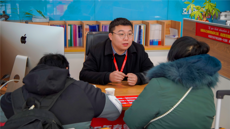 咨询中心的老师热情的向来校的家长和学生介绍学校开设的专业、校园环境、教学设施、师资力量等情况,并根据同学们的实际情况、求学需求和兴趣爱好,结合他们的个人特点为他们推荐适合的专业。家长和同学们都非常仔细的聆听咨询老师的参考建议。面对如此火爆的咨询报名场景,咨询中心王主管谈到“现在我们的职业教育很受国家重视与扶持,尤其是互联网行业人才的需求与日俱增,前年很多家长已经带着孩过来咨询了,刚过完年就送孩子来上课学习了。”