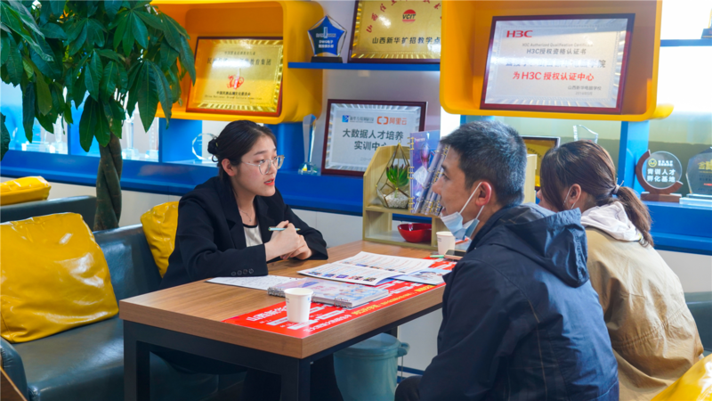 走进山西新华电脑学校咨询中心,小编了解到,很多学生家长都是慕名前来,也有部分是通过学校的咨询热线了解到的报名时间,他们大多数都是从山西省各个不同地市,带着自己的孩子来到这里。现场向咨询老师详细询问了学校的专业设置、课程安排及师资力量等情况,咨询老师则结合学生自身情况,为其提供了参考意见,并对他们提出的细节问题认真仔细地解答,真正做到了让每位家长安心、放心。