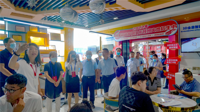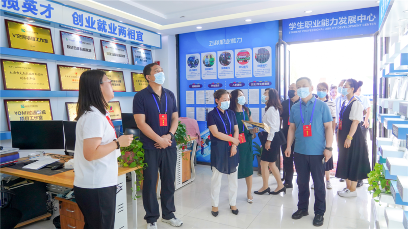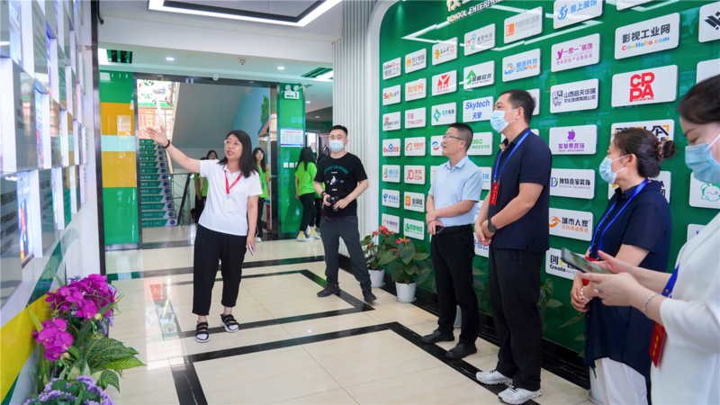 调研组在山西新华电脑学校校方负责人的陪同下先后参观了学校的创就业指导中心、学生作品展示区、招生咨询中心、各专业实训基地等地,让各位领导感受到新时代下职业教育的发展前景。每到一处,调研组的领导们在认真听取了校方关于学校办学规模、专业设置、校企合作实训基地建设介绍的同时,并就职业教育发展前景、学校发展规划、产教融合人才培养、招生就业和学生管理等方面进行了交流指导。