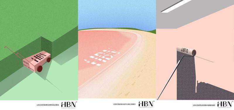 终于,在Photoshop、3ds max三维设计与制作等一些专业课程的学习后,他收到了比赛开始的通知,迫不及待的报名,准备,并如愿以偿的获得了此次机会。大广赛的参与企业有很多,经过考虑,他最终选择了HBN这个品牌的平面海报设计,并针对产品的特点进行了研究分析,确定了自己的创作方向。