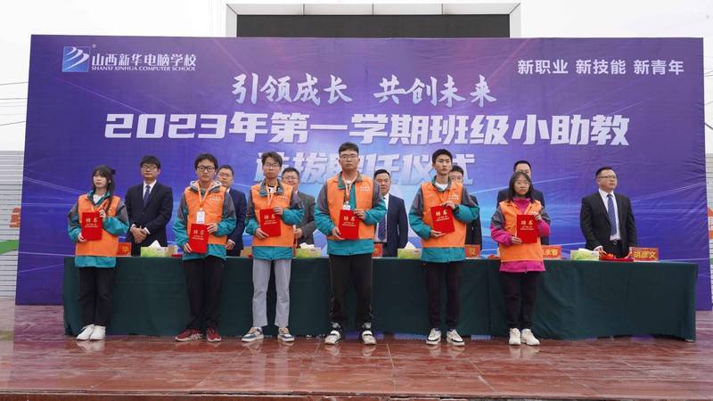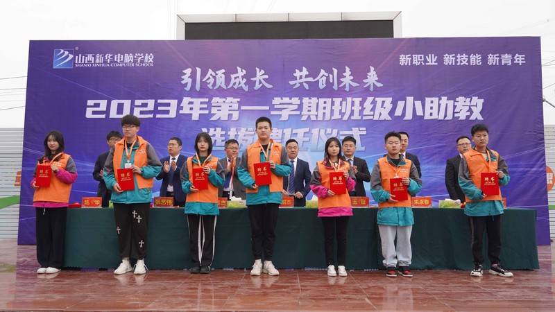 为进一步加强学校教育教学管理,提升教学品质建设,山西新华电脑学校于2023年4月13日,在各班级选拔优秀学生代表担任班级小助教,协助授课教师和班主任进行日常班级管理工作,以此来发挥学生带头作用,进一步提升我校班风、学风和校风。学校相关领导及全体师生参加了本次仪式。