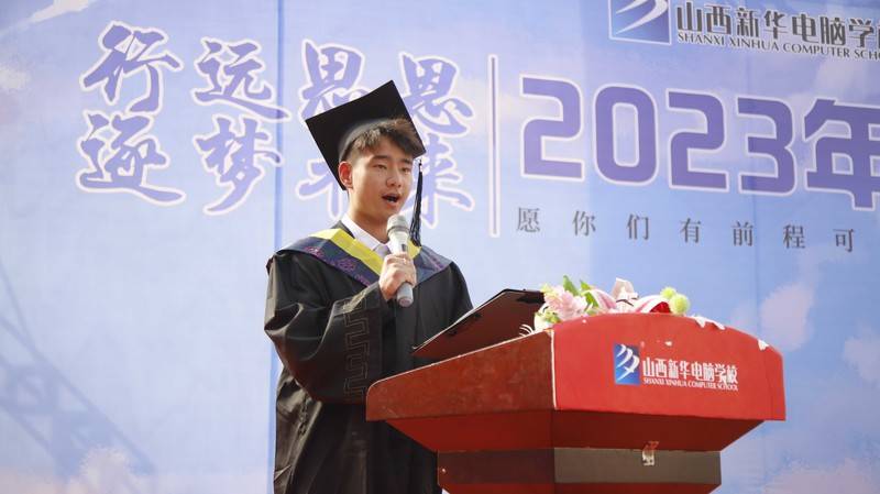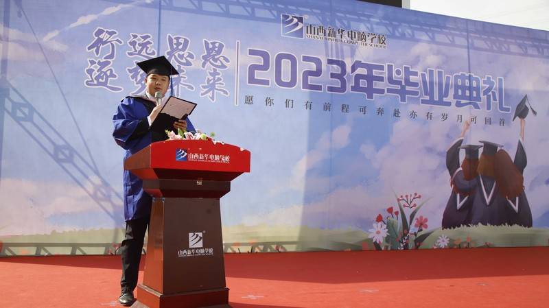 和风衍漾,骊歌未央,盛装佳期,青春启航。3月10日下午14时我校2023届学生毕业典礼在后操场举行,全体毕业生齐聚后操场,以典礼见证学子们的成长与收获,开启人生新的旅程与辉煌。山西新华互联网学校校长徐磊、校长助理王丽萍、校区主任朱前杰等校领导出席了毕业典礼。