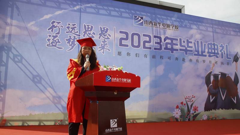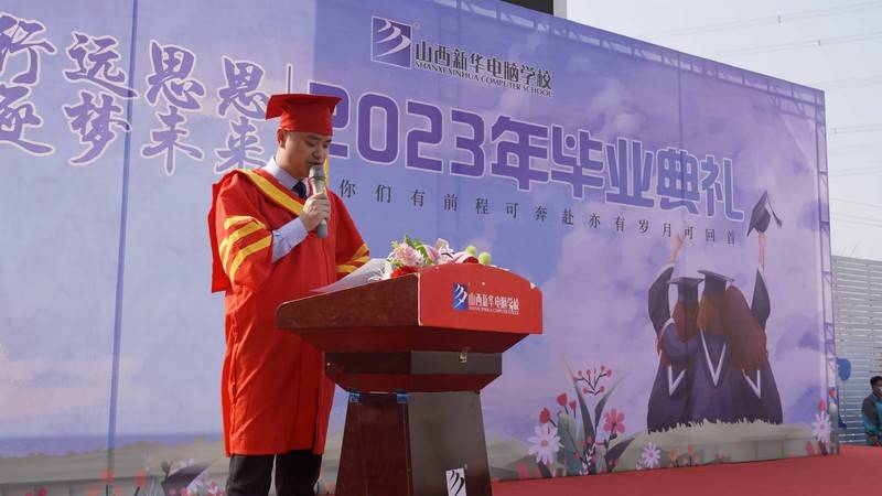 山西新华电脑学校校长徐磊在祝福词中希望全校师生向着更高的目标再出发、再起航!离别之际,嘱托毕业学子们:一要坚持终身学习,既做本职工作的行家里手,又要成为复合型的多面手;二要弘扬工匠精神,砥砺践履专业精神,埋头打磨专业能力,把简单的事情做到极致,把平凡的事情做到完美;三要常回家看看,学院永远是温暖的港湾,永远有一盏灯为同学们而亮;四要传承“互联、通达、修身、精技”的校训,把学校养成的良好品德和作风带到学习、工作中去,以青春之激扬,勇担家国之梦想,在最好的时代,遇见最好的自己,开启更绚丽的人生篇章!