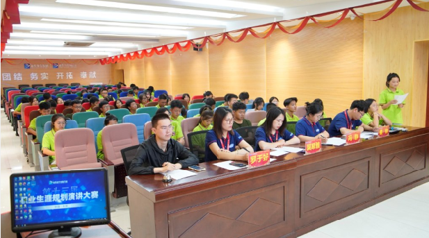 比赛开始,选手按照抽签顺序依次上台进行演讲,每位参赛同学都做了充分的准备,以极高的热情来参加本次比赛,他们通过对自己能力、兴趣、个性和价值观的认知,形成职业意识,初步确立职业发展方向和目标,明确为步入理想工作所需做的准备。