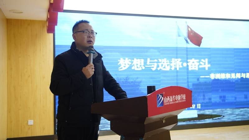 在演讲开始之前,主讲人强调了山西新华电脑学校作为一个专注于国防教育的特色互联网学校,在国防教育方面所扮演的角色。他希望:“山西新华要依托新华的职业教育资源源源不断的为军队培养高技能人才,为国防建设提供重要的人才支撑。”
