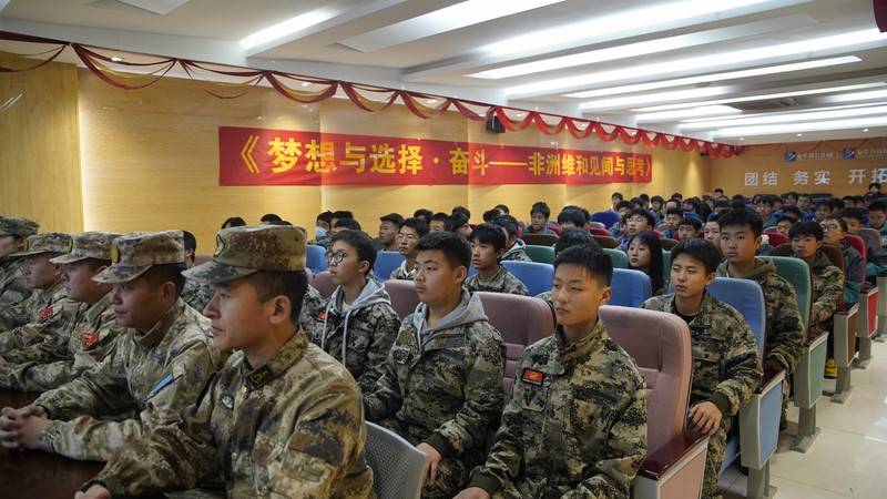 当今世界正经历百年未有之大变局,局部战争和军事冲突的阴影始终存在,为了进一步增强同学们的国防意识,树立报国信念,山西新华电脑学校邀请某部驻非洲维和部队政治处主任李峰,走进校园为同学们开展一场《梦想与选择·奋斗——非洲维和见闻与思考》为主题的国防教育主题讲座。