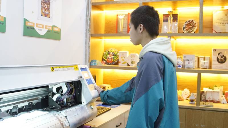 谈到在山西新华的项目实训时,张嘉晨表示:“这里的教师团队非常专业,他们不仅有着丰富的实践经验,还有着独特的教学方法。有任何不会的,老师都能够耐心教导,直到教会为止。目前已经学习了海报、展架灯箱、条幅等常见的图文设备的制作,未来我一定会的更多。”