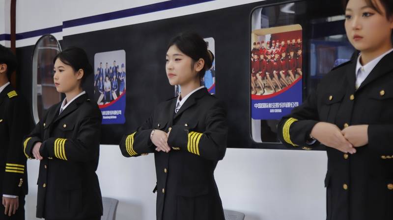 乘务专业的学生们围绕航空服务、安全检查、应急处置等方向进行了充分的展示。他们通过模拟实际工作场景,让在座的老师和家长们了解到了乘务工作的专业性和严谨性。