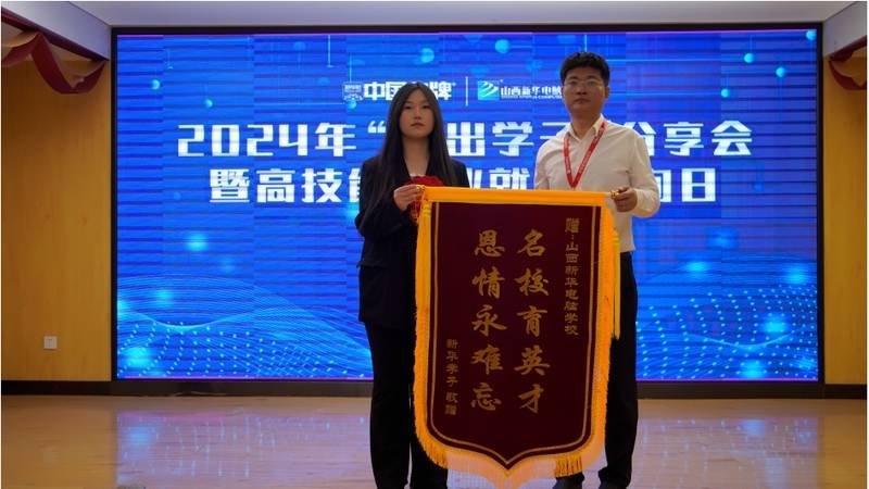 接下来,学校领导现场为杰出学子颁发荣誉证书,一份荣誉一份肯定,其中包含着学校对学子的更高期望,希望同学们戒骄戒躁,能在未来的职场当中创造更大辉煌和成绩。杰出学子们也向学校献上锦旗,以此来表达对母校的感恩之情。