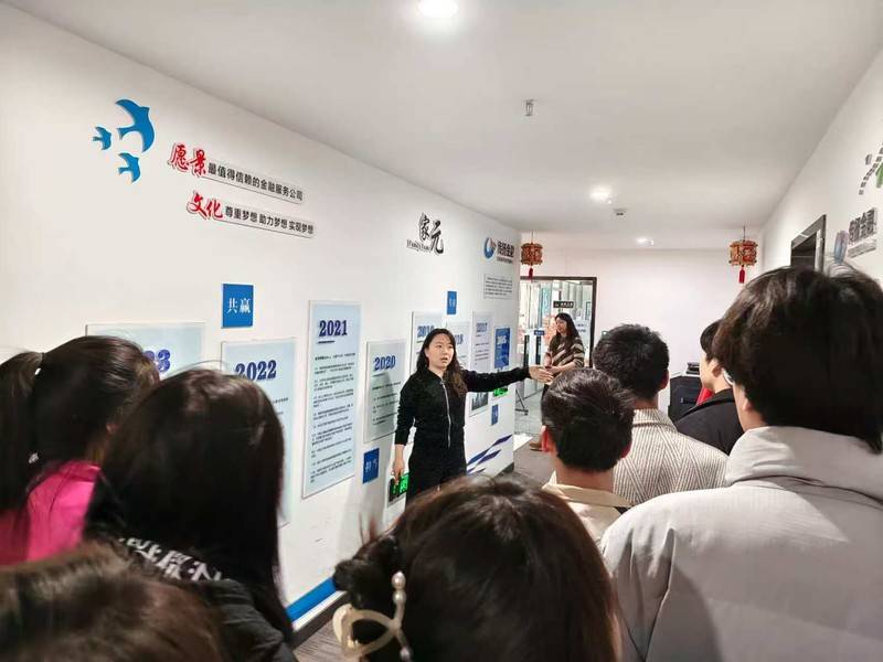 在传扬金融企业专业人员的带领下,学生们首先参观了企业的各个办公区域,了解了金融机构的日常运作流程。同学们认真聆听讲解,不时提出自己的疑问,对金融领域的业务流程和岗位职能有了更直观的认识。