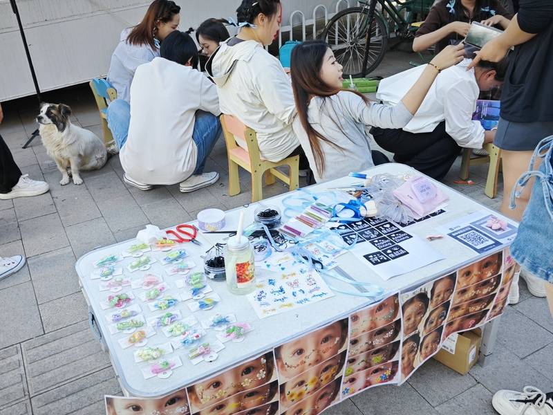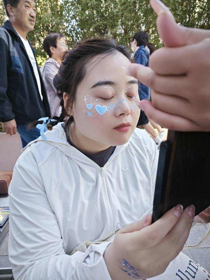 实践过程中,师生们热情地与前来应援的粉丝们互动。老师们穿梭在摊位间,为学生们提供及时的技术指导,分享多年积累的化妆经验;学生们则耐心倾听粉丝需求,根据不同的脸型、肤色定制专属妆容。面对粉丝们关于妆容持久度、色彩搭配的疑问,师生们细致解答,专业又贴心的服务赢得了现场粉丝的一致好评。一位粉丝开心地说:“这个应援妆太惊艳了!不仅让我在人群中脱颖而出,还让我感受到了山西新华师生们的专业与热情,真的太值了!”