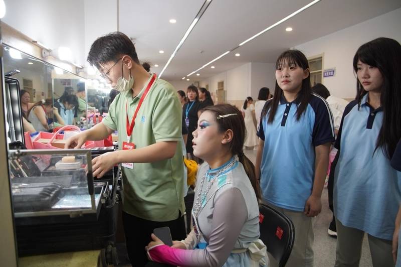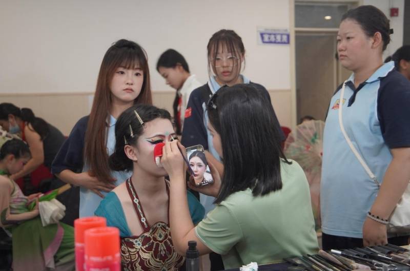活动当天,学生们怀揣着激动与好奇,有序地进入后台区域。映入眼帘的是一片忙碌而有序的景象,服装师、化妆师、灯光师等各工种人员紧密协作,为舞台上的精彩呈现做着最后的准备。学生们首先来到化妆区,这里是展现形象设计魅力的核心区域之一。专业化妆师们正在为舞者们精心打造妆容,从底妆的轻薄服帖到眼妆的深邃灵动,每一个细节都处理得恰到好处。新华学子们围在化妆师身旁,目不转睛地观察着化妆步骤,并不时提出心中的疑问。化妆师们也非常耐心,一边操作一边讲解,从不同肤质适用的化妆品选择,到根据舞蹈风格设计妆容的技巧,都一一分享。比如,对于民族舞表演,会着重突出舞者的面部轮廓和五官特点,通过色彩的搭配展现民族特色;而现代舞妆容则更注重创意和个性表达,可能会运用一些特殊的彩妆产品来营造独特的舞台效果。
